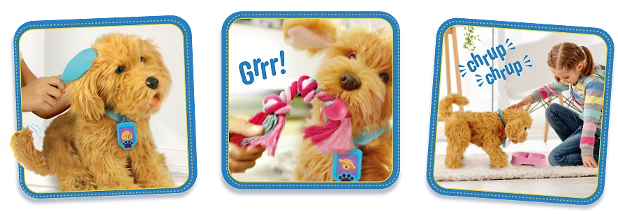Skanując je na czytniku obroży, dziecko może bawić się z Pikselem, ćwiczyć z nim jego ulubione sztuczki, karmić go, pozwalać mu się wysiusiać, a nawet zmienić mu imię!