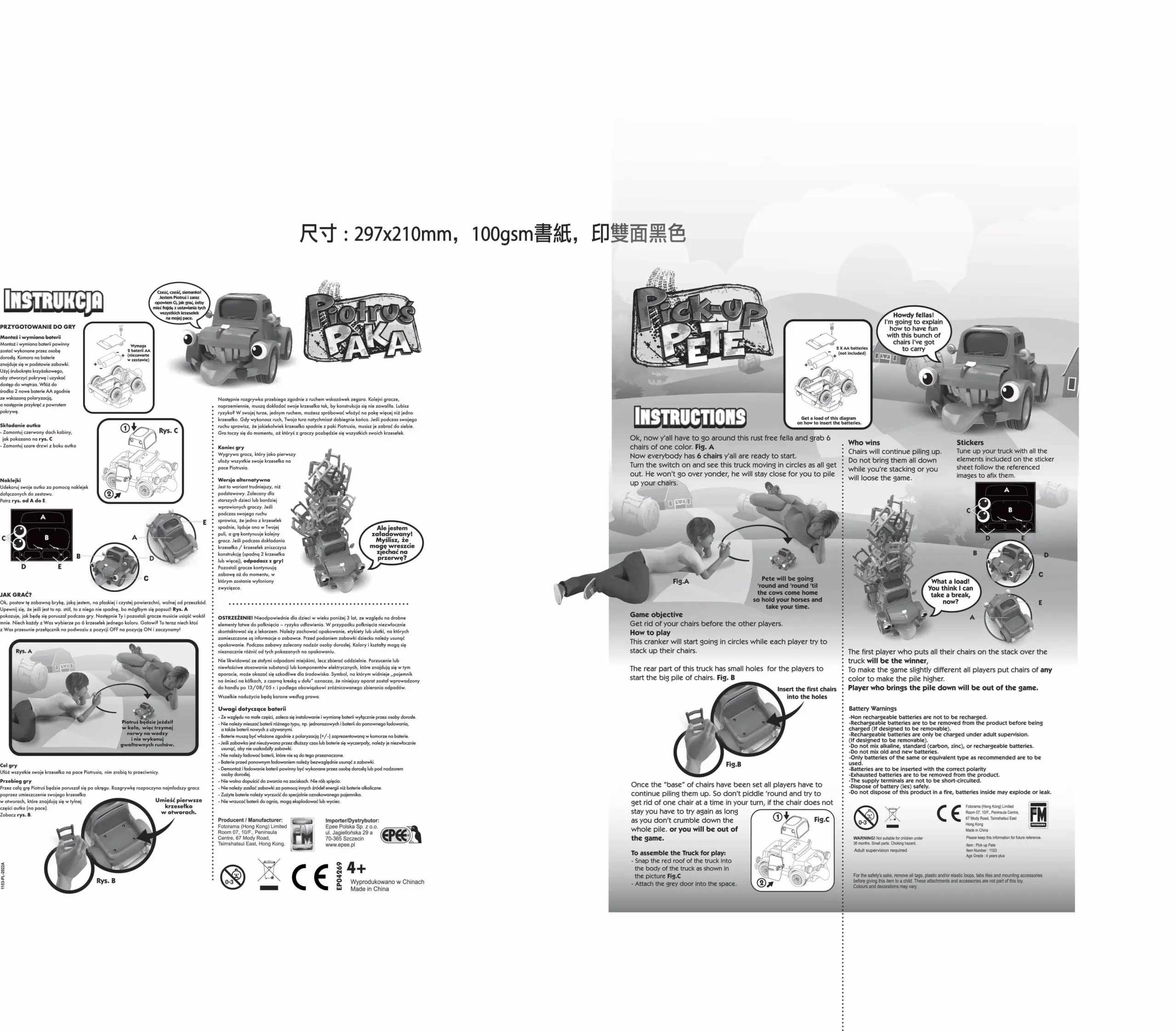 Piotruś Paka to zabawne jeżdżące autko, którego zadaniem jest przewiezienie jak największej ilości krzesełek. Ale uwaga! Krzesełka należy ustawiać na pakę Piotrusia bardzo ostrożnie – autko jest w ciągłym ruchu. Przegrywa gracz, którego konstrukcja się zawali. To wspaniały trening zręczności dla małych i dużych!