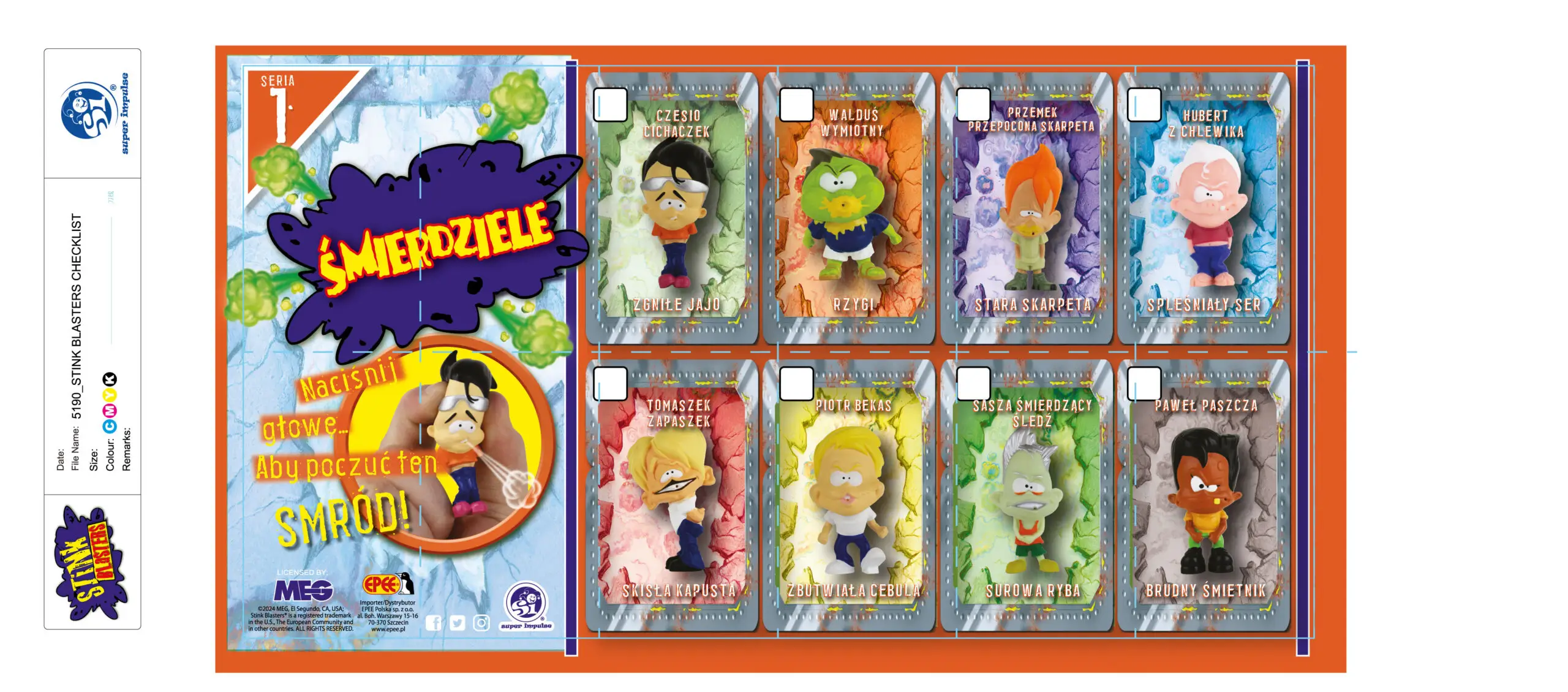 W asortymencie 8 figurek: Sasza Śmierdzący Śledź, Tomaszek Zapaszek, Przemek Przepocona Skarpeta, Paweł Paszcza, Piotr Bekas, Czesio Cichaczek, Walduś Wymiotny, Hubert z Chlewika.