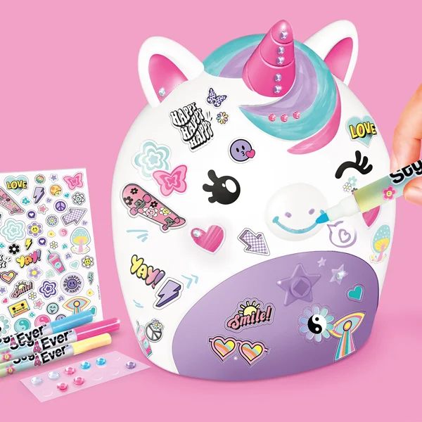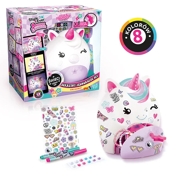 Dzięki dołączonym do zestawu markerom, naklejkom oraz kryształkom, można spersonalizować swojego jednorożca, nadając mu niepowtarzalny wygląd. Dodatkowe akcesoria pozwalają na rozwijanie kreatywności, a możliwość tworzenia swojego własnego wzoru sprawia, że każdy Dekorożec stanie się jedyny w swoim rodzaju. Ozdabianie figurki to nie tylko twórcze wyzwanie, ale także świetna forma relaksu i zabawy kolekcjonerskiej. Pod koniec dekorowania Sekretny Jednorożec może pełnić funkcję bajkowej lampki nocnej.